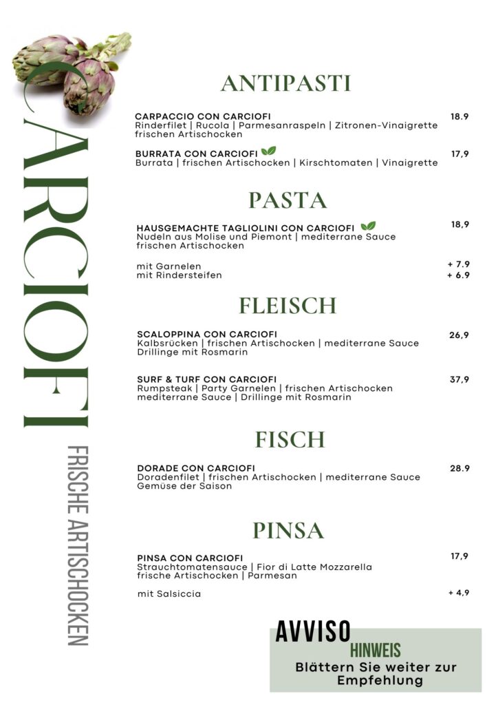 • Speisekarte