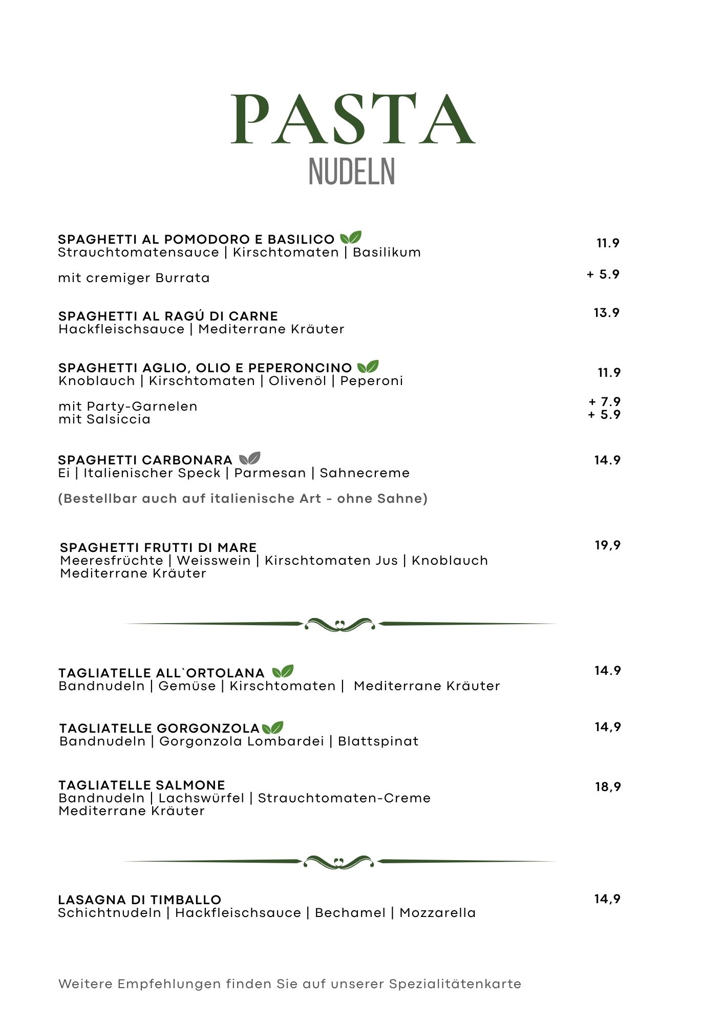 Speisekarte